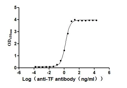 Measured by its binding ability in a functional ELISA. Immobilized Human TF at 2 μg/mL can bind Anti-TF recombinant antibody (CSB-RA007928MA2HU) . The EC50 is 1.434-1.635 ng/mL.Form: